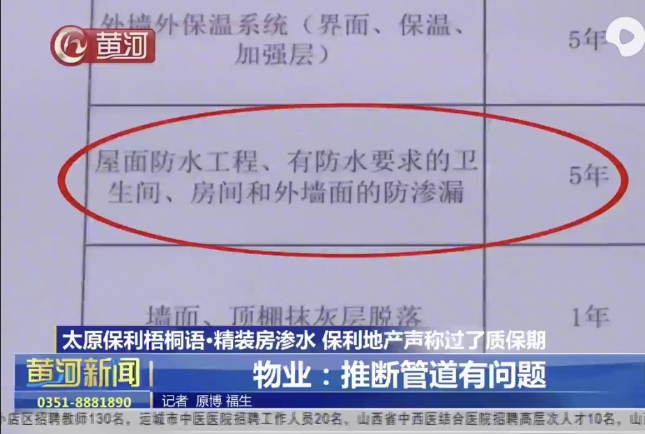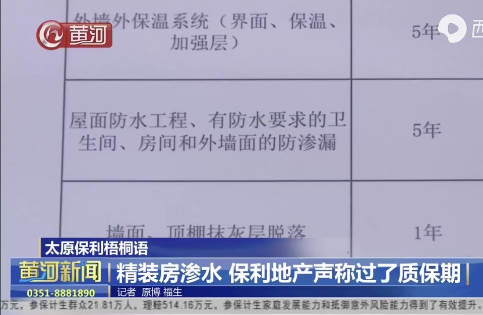 对此,保利梧桐语物业服务中心的工作人员表示,事件发生后去业主家里看过,第一次看的时候漏水点比较小,第二次看就扩大了,而他们联系地产维保人员得到的答复是精装房的主体结构已经过了质量保修期。